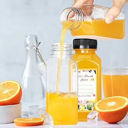 - γFood Grade MaterialγMade of food-grade plastic PET for these empty juice plastic bottles, safe to use. Besides, the plastic made features strong, durable and resistant, keeping well protected your drinks always. (Note: not suitable for hot liquid and not dishwasher safe.)