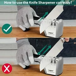 - ?Ergonomically design: Non-slip rubber base and ergonomic handle bring good cooking experience. It is perfect suitable for both right-handed and left-handed users. You can use it with both right hand and left hand. The bottom of the knife sharpener has non-slip rubber bases that prevent slipping during use.