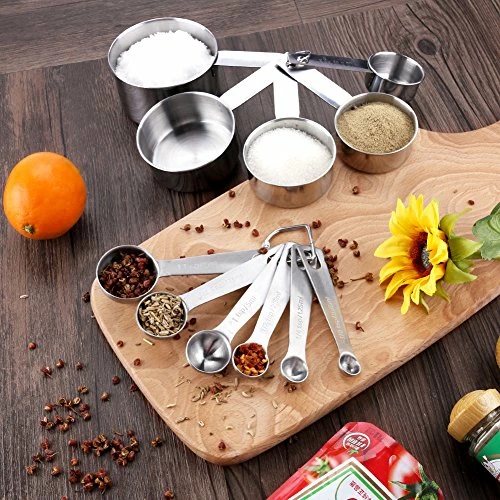 - PERFECT SPOONS or CUPS FOR MEASURING Crafted of professional gauge tablespoons includes 11 measuring sizes 1/8 tsp 1/4 tsp 1/2 tsp 1 tsp 1/2 Tbsp 1Tbsp 1/8 cup 1/4 cup 1/3 cup 1/2 cup 1 cup. With each measurement conveniently marked on the handle of each spoon ensures the measuring