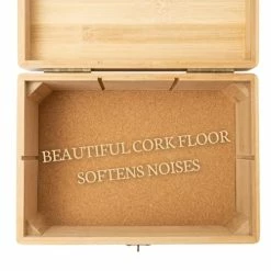 - [ Unique Customized Design ] β The soft cork floor in our box ensures there is no clattering and that user experience is seamless as compared to other hard bamboo boxes in the market. The lid rests on very durable custom-made hinges that close the box perfectly to increase its durability. The large compartment divider has now been reinforced to prevent damage during transport.