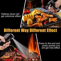 - γEffective Control of Oil Flowγ- We improved the olive oil sprayer of the nozzle to make the spraying area larger than others, and spray evenly more delicate mist, to control the amount of oil better and reduce calories; Different way different effect, press to the end and press quickly you will get a foggy effect, halfway down will get a columnar effect; High efficient use, without wasting. Improve the taste, more healthy.