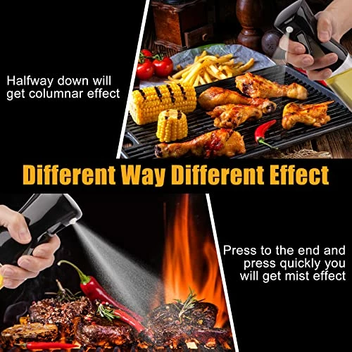 - γMultipurpose & Save Oilγ- This oil sprayer for cooking can be used for filling oil, lemon and lime juice, wine; make it uniform mist, convenient and save oil during BBQ, making, salad, baking, frying, grilling, instead of using brushes; Deeply loved by chefs and gourmets, the real kitchen practical little helper.
