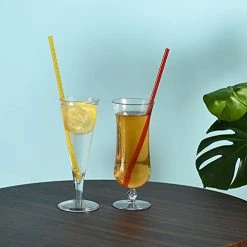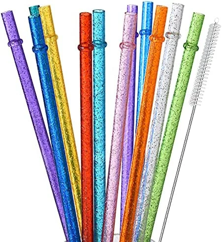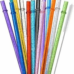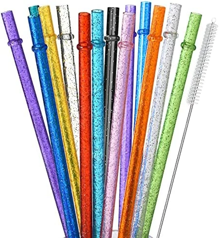 Iβve had these for over a month now and they are great. They are tall enough to fit in any of my cups. They clean up really easily and are dishwasher safe. They are so durable and none of the glitter comes off which was a concern of mine. If I could give them 6 stars I would. The colors are also soooo pretty and donβt fade. They are a harder plastic which I like.