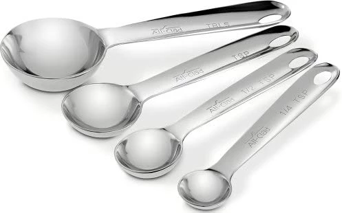 - Ultra-durable, stainless steel measuring spoons offer quality and precision.