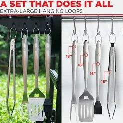 Overall, love this set – my small complaint is about any and all tongs – they do not grip well. The ends need some teeth, nothing huge, but teeth to fully grip things like chicken thighs where the skin easily slips off the thigh, similar for legs and breasts with the skin. Also, turning or picking up larger steaks was sketchy and the meat would slip out.So….. I modded mine – see the pix.Now I can grab a whole pork tenderloin and sling it around without any risk of losing a grip on it. Have not had ANYTHING slip out of the tongs grip since the mod. :-)Otherwise, solid set of BBQ tools for sure.