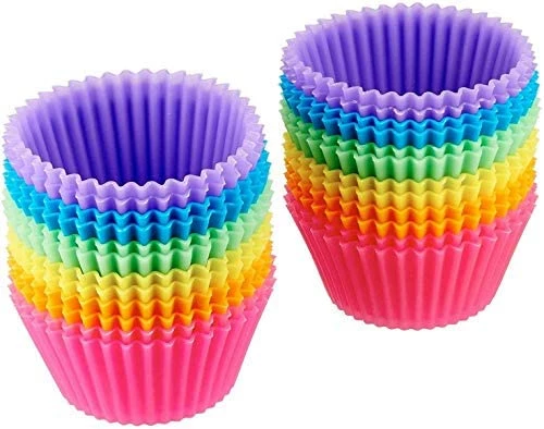 - 12-pack of reusable baking cups; made of food-grade BPA-free silicone; ideal for baking, lunch/snack cups, and more