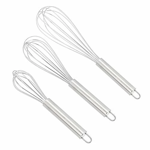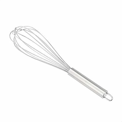 - 12-inch whisk: the wire whisk makes easy work of beating eggs, blending sauces, mixing cake batter, making whipped cream, and more