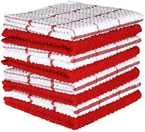 - ABSORBENT & LOW LINT: WASH BEFORE FIRST USE . These Dishcloths with a size of 12 x 12 inches are ideal for cleaning, scrubbing, wiping and drying the kitchen utensils or any other tableware without leaving streaks or tiny fibers behind, no lint and scratch-free. The Unique weave pattern makes it more absorbent and holds more water while cleaning. Versatile and fast drying stink free dish cloth for your kitchen cleaning and dish washing tasks.