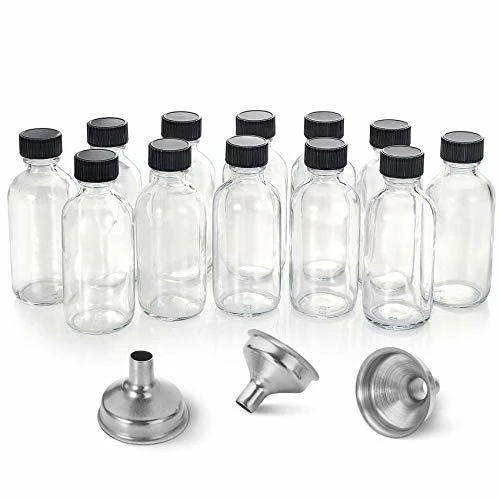 - β Package Includes: 12 pack 2oz (60ml) boston round glass bottle + 3 small stainless steel funnels + 24 labels (2 types). Bottles are packaged in grid-shaped partition and thick carton box to prevent damage in transport. If you receive a damaged bottle, contact us and we will refund you or replace it.