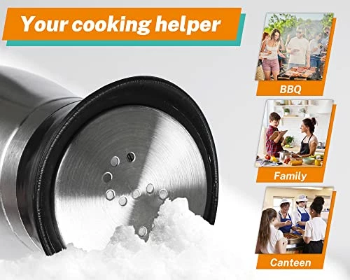 - ?γNO OVER-SEASONINGγ There are 11 small holes evenly distributed on the Stainless Steel Lid, you only need to shake 1-2 times at most to get the salt and pepper flowing just right, saving time and not over-seasoning. You and your family can enjoy the pleasuring of cooking.