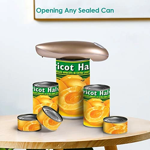 - ?????? ?????- The automatic can opener is made of durable ABS material, put the electric can opener for kitchen on the jar and the handheld can opener will automatically cut the can 360Β° along the lid with no sharp edges. Don’t worry about cutting your hand automatic can opener hands free with a magnetic suction function.