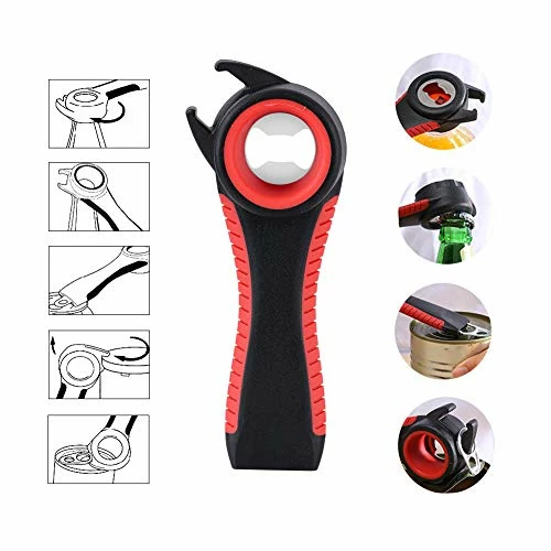 - 5-in-1 Bottle Opener: A practical tool for opening those water bottles with short tops that are hard to grip. Easily twist off screw caps with a simple twist, pop off bottle caps instantly, release vacuum on jar lids at ease. Itβs handy and portable, very practical and labor-saving.