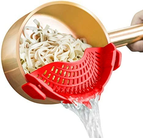 My daughter recommended this to me, and I have since sent one to my sister and my daughter-in-law. It is flexible and can clip onto the edge of any size pot. The clips are very strong. Itβs easy to clean. I havenβt used a regular colander again unless I am straining a very large pot of pasta.