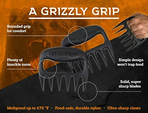 - TIME SAVER – Bear Paws are the answer to perfectly shredded meat without the mess and headache of knives and forks. Easily grasp and shred pork, chicken, beef, and more with the ultra-sharp claws.