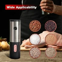 - 【Adjustable Grinder】The electric pepper grinder have many grinding levels choose for you, spices from coarse to fine. You can choose the coarseness of your spice, salt or pepper by turning adjustment knob at the bottom of the grinder. Convernient and Fast.