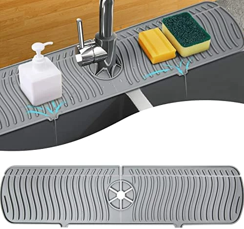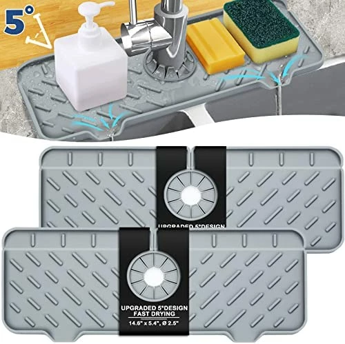 - ?γKEEP YOUR COUNTERTOP DRYγ Silicone faucets pad new designed for faucet splash with the draining, upgrading your kitchen sink & bathroom countertop in an effort-saving way! This means never gets soggy, or any water spots by the faucet. You don’t need to worry about the water staying on the mat or counter.