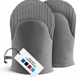 I wanted for a long time to buy oven mitts, since I only had one, I would use the one oven mitt and a potholder, sometimes it got a little awkward trying to pull out the pans in the oven.These mitts work wonderfully! They are the right size for me and my husband to use. and I like it that they have silicone all around the hand area, there isn’t any slippage.