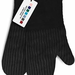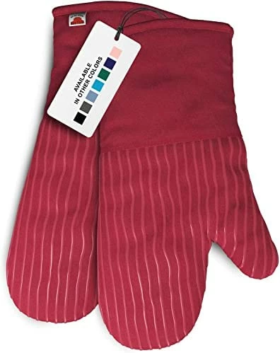 - SILICONE STRIPING: This oven mitt set features an impressive silicone striping that provides a non-slip grip for superior handling.