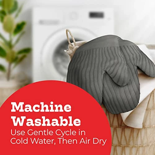 - EASY CLEAN: Machine washable and complete with a handy hook, our oven mittens are designed to make your life easier.