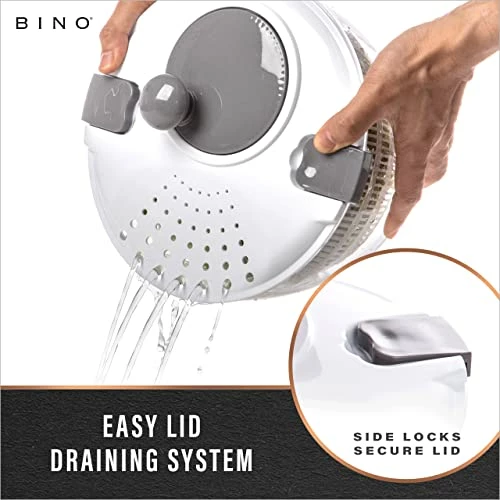- Quality Salad Spinner: The BINO salad spinner is made from BPA-free plastic with a spinning handle for manual, one-handed operation. This model comes with side locks and a built-in lid drainer. It’s a 3-in-1 multifunctional kitchen tool with a removable basket that doubles as a colander and a clear bowl for serving.