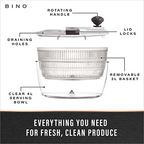 Top 10 β BINO | Salad Spinner – 4.2 Qt | Large Manual Lettuce Spinner With Secure Lid Lock & Built-in Draining System | Salad Spinner With Salad Bowl | Fruit & Vegetable Basket Colander | Kitchen Gadgets β¨