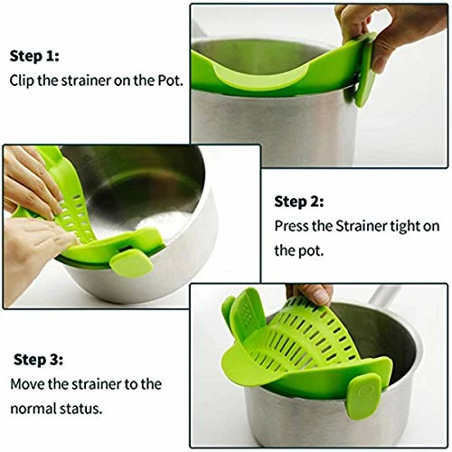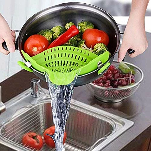 - βοΈMATERIAL: Our strainer is made of safe and non-toxic silicone, 100% food-grade. The strainer fits for a pan. Please ensure itβs clamped tightly before draining
