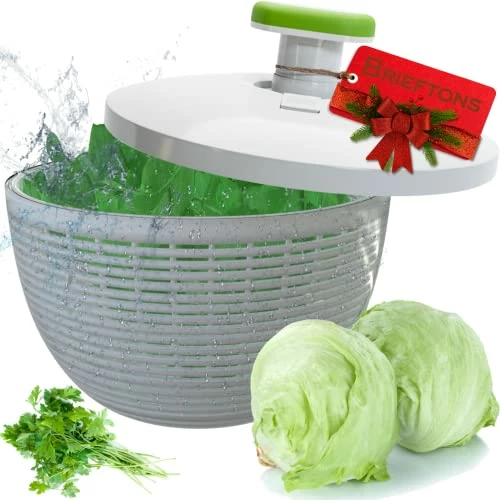 - β Big Enough For The Whole Family: The spacious size of the Brieftons vegetable spinner (6.2-quart) means you can process enough vegetables for the whole family in one go. This large salad spinner, lettuce spinner & dryer is unbeatable for the price. It’s also super easy to use and clean, and compact to store when not in use, saving you precious kitchen space.