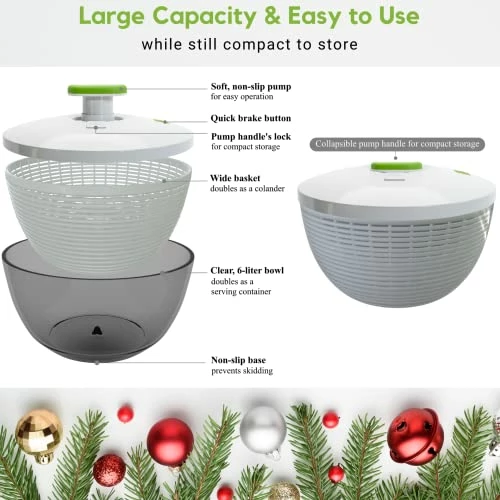 - β A Perfect Gift: This makes a meaningful gift of health, a cool Christmas present idea for that special person in your life this holiday season, be it your mom, dad, wife, husband, son, daughter, or friend. This salad dryer makes eating vegetables fun and attractive for all β Buy With Confidence: We are the trusted kitchen brand with thousands of happy customers. Your purchase is backed by our 100% satisfaction guarantee and we will solve any problem within 12 hours.