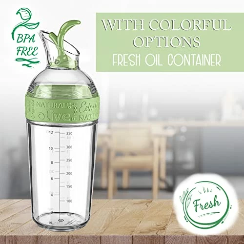 - βοΈ ITALIAN DESIGN LARGE DRESSING SHAKER BOTTLE : It adds a stylish atmosphere to your kitchen with colorful options. The 12 ounce bottle is the perfect size for 2 to 6 people.