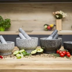 - Quick cleaning & zero kitchen messes: As granite is inherently durable and heavy, this mortar will not slip on your kitchen counters, remaining still throughout the grinding process. Our pestle offers foolproof grip, gliding across the mortarβs interior, without the need of excess hand motions, which would result in ingredient waste and kitchen counter messes! By investing in this stoneware set, you are gaining a timeless, multifunctional kitchen tool, which will make cooking a breeze!
