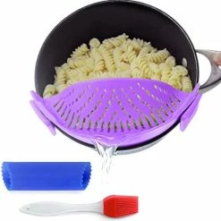 I have to say that this pot strainer was an impulse buy on my part. I saw it on a list of things “you have to have.” Usually these lists have items that are gimick-y and don’t work or are just plain too expensive. Well, this pot strainer was not too expensive and I decided to try it out on a whim. Well, what a wonderful surprise when it arrived and it worked!!! I love this!! I used to use a strainer that I had to hold on the edge of the pot and burn my hands on. This is SO MUCH better! It clips onto the pot. It fits all the different sized pots I have used since it is made of a silicon material that is flexible. But it has STRONG CLIPS that hold it onto the edge of the pot. Even when I have a full pot of spaghetti and boiling water, it stays clipped! I have used it many times now and the clips stay strong! And the one I got is purple, my favorite color so this is always a bonus! This strainer has really made my life so much easier. Even my kids (teens) can use this without fear of accidentally dumping a whole pot of pasta or of burning themselves! I highly recommend this gadget! (I was NOT paid nor compensated in any way for this review! This is my HONEST opinion!)
