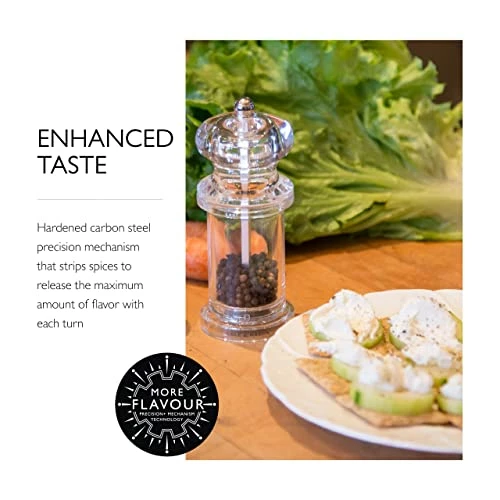 - Coarse Pepper Grinder: The carbon steel precision mechanism grinds and slices pepper for best flavor