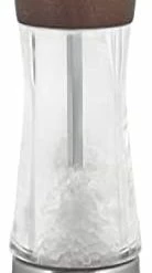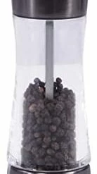 - Coarse Ground Pepper Mill: The clear acrylic mill with stainless steel finishes are easy to refill