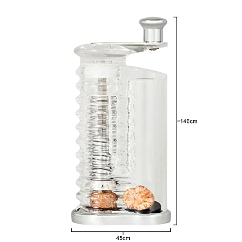 Cole & Mason high performance nutmeg mill with a sprung loaded mechanism to keep nutmeg in constant contact with the grating blade.Three serrated stainless steel grinding blades for a professional fine powder.Additional storage for up to 5 nutmeg