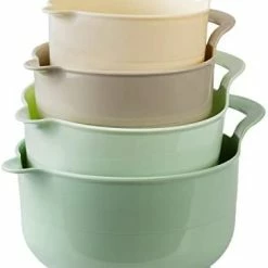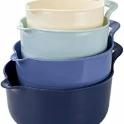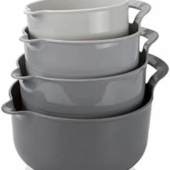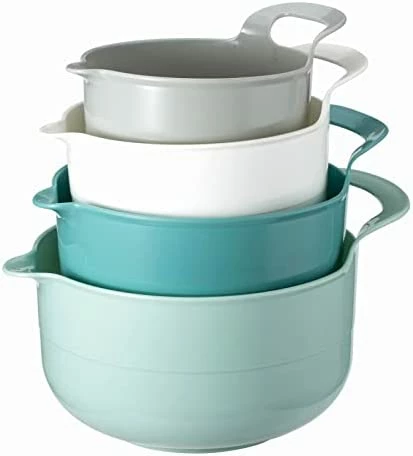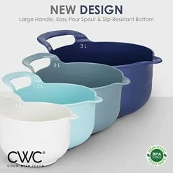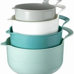 - Cook with Color 4 piece mixing bowl set – non slip bowls with pour spouts and handles; easy to clean, sturdy mixing bowls.