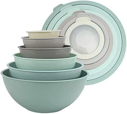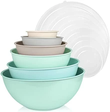 - Plastic mixing bowl set made of BPA free durable polypropylene and food safe material. Top rack dishwasher safe, microwave safe and freezer safe.
