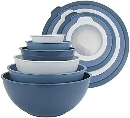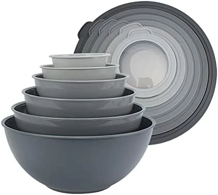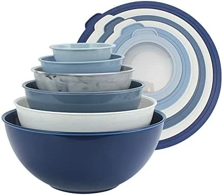 - 12 Piece nesting bowl set – a practical set of easy to clean kitchen bowls that can be used for food prep, serving, and storing.
