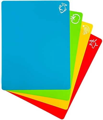 - SET OF 4 COLOR CODED HIGH-QUALITY THICK PLASTIC CUTTING MATS FOR COOKING – DISHWASHER SAFE – Great for kosher & vegetarian households! – cutting boards measure 12 inches by 15 inches. Easy to curl, roll, clean, and store for just about any use. Great warranty! Add to cart now!