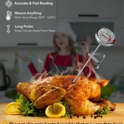 - ? PREMIUM QUALITY- Guaranteed high-quality cooking oil thermometer, it is made to withstand very high temperature and will stay intact through impact. Our food temperature probe thermometer doesn’t easily break or bend and the dial stays clear.