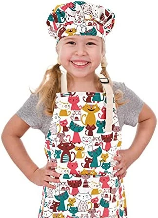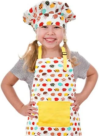 - 1. Aprons for kids and matching chef hat, It is a perfect layering garment when your child is helping you cook or DIY in the kitchen.