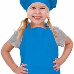 - 4. Child cooking/baking aprons sizesοΌSmall-19.6″ x 21.7″ (age 2-5 years), Large-19.6″x24″ (age 6-12 years). Ties: small/15″, large/18″, the chef hat with elastic band in the back.