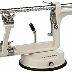 The media could not be loaded. Β So far, I am super impressed with this apple peeler. I don’t agree with the description that says it peels potatos etc, I believe this was only meant for apples. The suction lever really holds tight when put on a clean dry surface AND, don’t panic if you buy it & notice that the handle is on backwards. This is on purpose for packaging. A Phillips screwdriver removes it & then u just screw it in on the proper side. Watch my vid. As soon as I buy some apples I will update my review. But for now, It Really is sturdy, excellent design & fun to use. Hope this info helps.++++Also, if you DON’T WANT to Core/Slice your apples & U simply want to peel them ONLY, the instructions say you can’t REMOVE the slicer blade (remove the wingnut) & you can simply peel the apples (not peel/core/slice). Alot of people were disappointed that this thing peeled, cored & sliced their apples… apparently they didn’t open the instruction booklet. LOL. See photos.