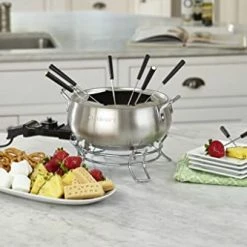 - INCLUDES: The Cuisinart elegant brushed stainless Fondue set includes a base, bowl, temperature probe, 8-fondue forks, and fork rack for the full fondue experience – also includes instruction and recipe booklet with lots of fondue options
