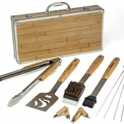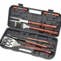 I like the plastic carrying case for this set. I’m using it on my boat, and the plastic case is nice to keep it contained and away from unwanted moisture. I like the real wood handles, which fit comfortable in the hand, and the size of the tools is suitable for the largest grill to the smallest. This tool kit is a great value, well made and very reasonably priced, and in this day of costlier everything, it’s a welcome value. Everything works as designed, and is made and designed durably with substantial material heft.
