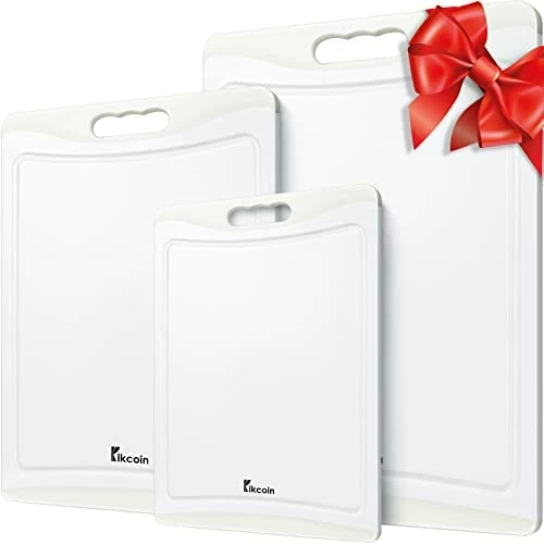 - γMeet All Kitchen NeedsγKikcoin extra large cutting board set includes 3 cutting boards of various sizes: an extra large size (17.33*12.0*0.4 inch) suitable for meat or steak; a large size (14.0*9.65*0.36 inch) suitable for vegetables; a medium size (11.3*7.7*0.36 inch) suitable for fruit. Various sizes of chop cutting board can be used for different area.