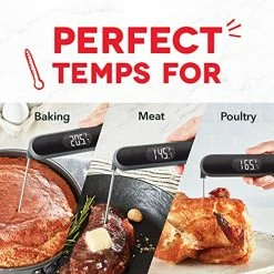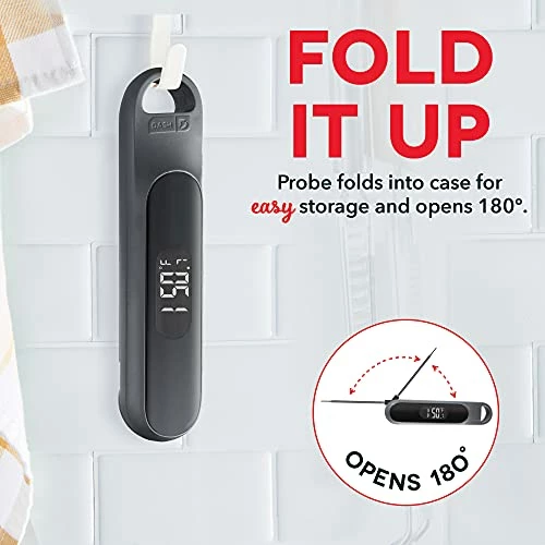 - AUTO-OFF & PORTABLE: Probe folds in for easy storage, while the auto-off function extends the thermometers battery lifespan.