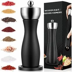 - γWooden BottleγOur pepper mill is made of natural beech wood and stainless steel, creating a sturdy product that is harder to break. The sleek black finish will add to the visual appeal of any table setting.