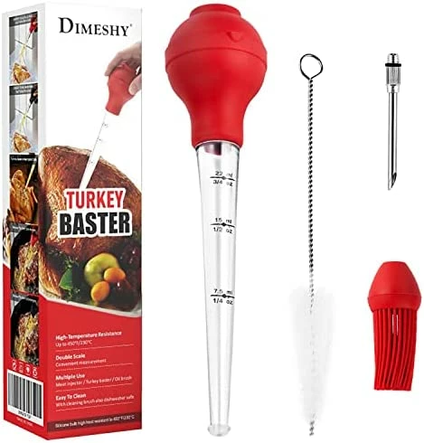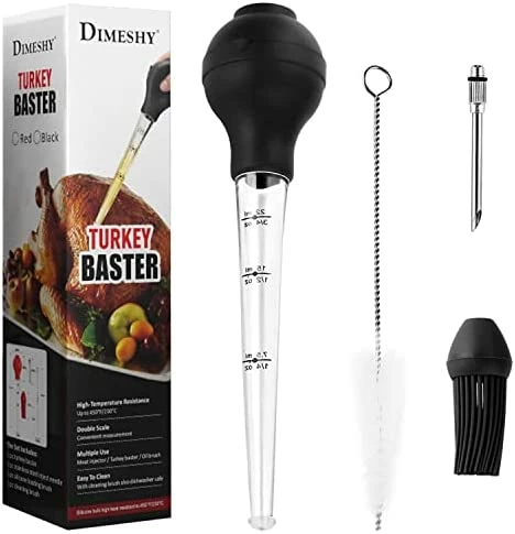 - γMEAT INJETCORγ DIMESHY Baster with injector needle, silicone brush, It is the same function as meat injector, easily inject the sauce to the turkey meat, make your dish super moist, and full of flavor.