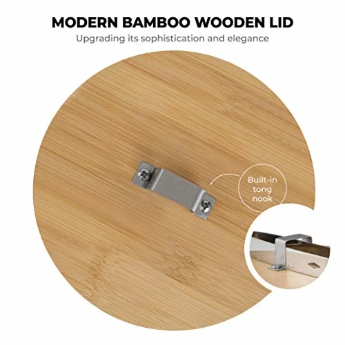 - ATTRACTIVE LID – The ice bucket is paired with a modern wooden lid, upgrading its image to one of sophistication and elegance. The lid has a built-in nook to store the tong included with the bucket.
