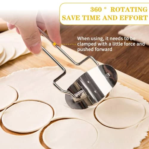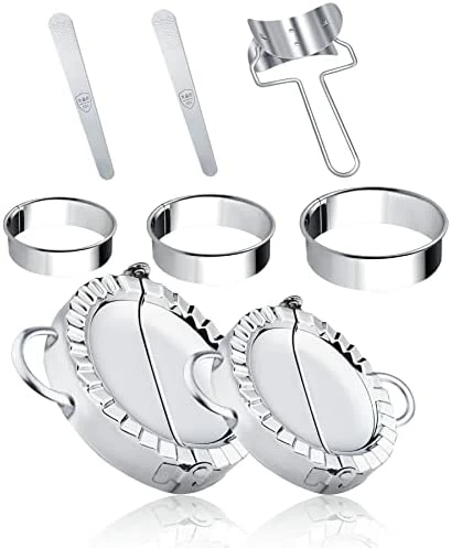 - γThe Size of Empanadas Pressγ: Each dumpling maker set is crafted of food-grade 304 stainless steel. The size of the dumplings maker is 3.74 inches in diameter and 2.95 inches in diameter, the filling spoon is 6.29 inches in length, and the dough press round three-piece set is 2.95 inches in diameter, 3.34 inches in diameter, and 3.74 inches in diameter. Featuring a round bottom that allows you to make the dough circle wrappers to the size of each shape and place them on the mold.